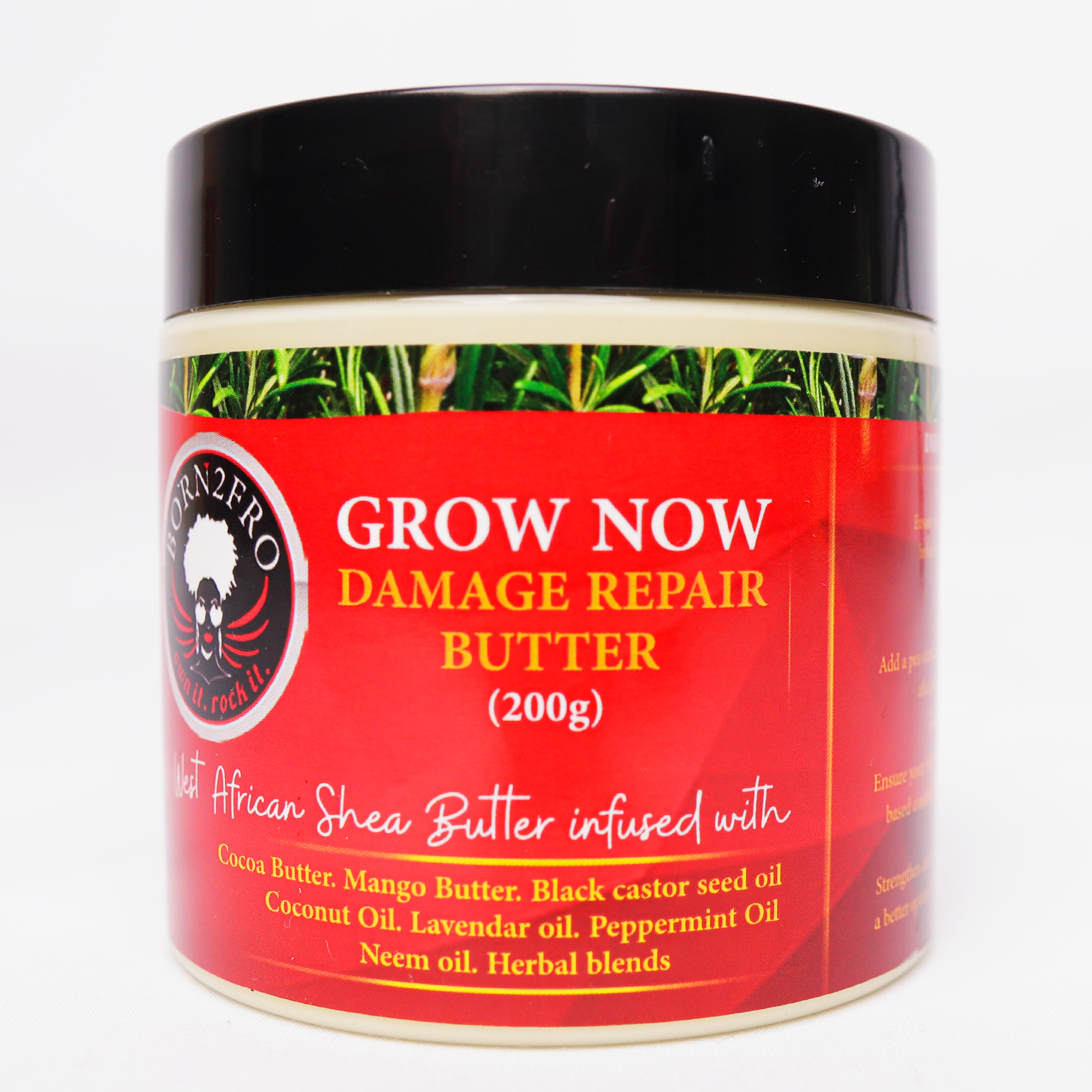 The Grow Now Damage Repair Butter is a whipped Elixir of Plant Butters, Potent Herbs, Healing and Growth oils fused together to Strengthen Hair Strands, Reduce Breakage, Thinning Hairline and Deeply Moisturize the Hair